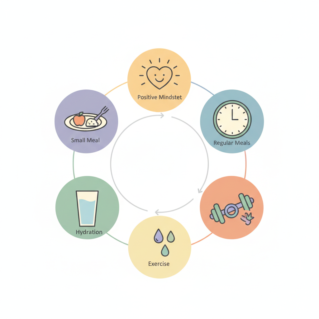 일관된 식사 주기: 불규칙한 식습관은 인슐린 수치를 불안정하게 만들고 폭식을 유발합니다. 정해진 시간에 식사하여 신체 리듬을 최적화합니다.