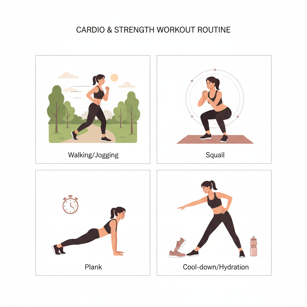 복합 운동의 병행: 체지방 연소를 위한 유산소 운동과 기초대사량 증진을 위한 근력 운동을 적절한 비율로 조합합니다.